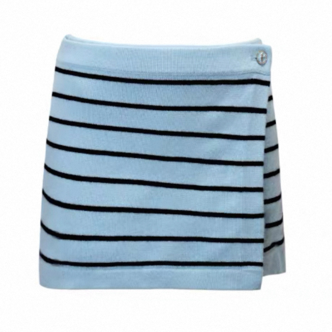 The Maisie Skort is a versatile addition to your wardrobe, combining the comfort of shorts with the elegance of a skirt. The blue and black stripe design adds a touch of sophistication, while the front overlay creates a flattering silhouette. Perfect for any occasion, this skort is a stylish and practical choice.