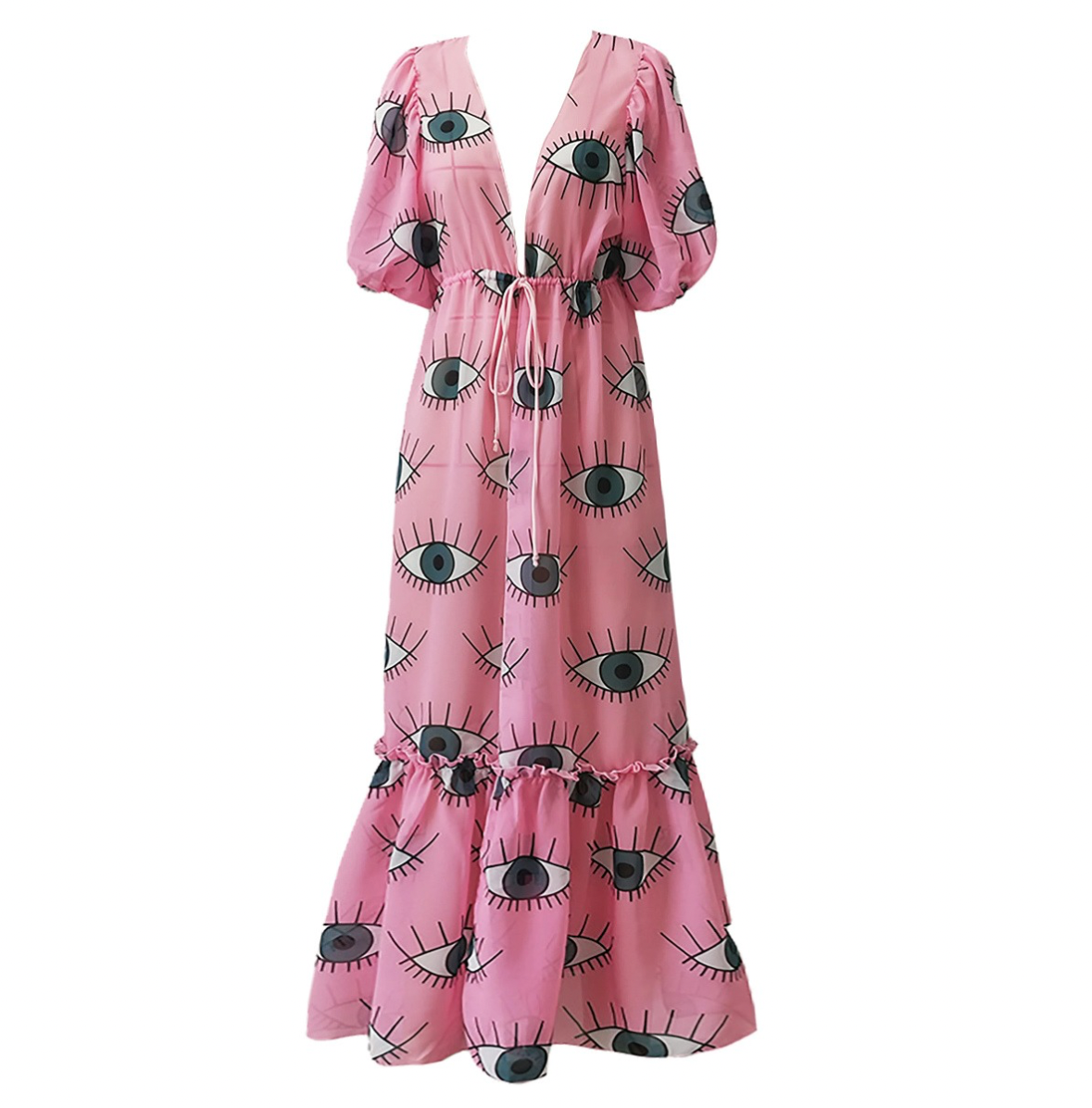 The Nicole Cover-Up is the perfect accessory for your next beach day. Made with lightweight, breathable fabric, this pink coverup features a fun eye print and elbow length sleeves. Stay stylish and protected from the sun in this versatile swimwear coverup.