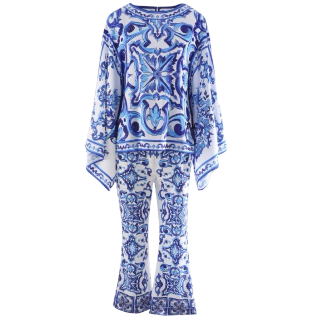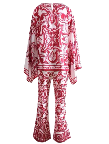 Get ready to elevate your summer wardrobe with our Valeria Top and Pants Set. Featuring a beautifully printed tunic top with batwing sleeves and a pant with a subtle flare, this set effortlessly combines style and comfort. Perfect for any summer occasion, this set is a must-have for every fashion-forward individual.