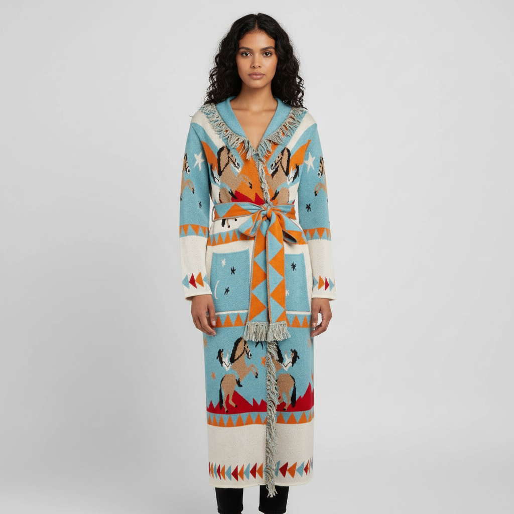 Introducing the Brianna Cardigan - a versatile piece perfect for any occasion. This full length cardigan features a waist tie for a flattering fit, while its rodeo print adds a touch of western charm. With a comfortable and stylish design, this cardigan is a must-have for any wardrobe.