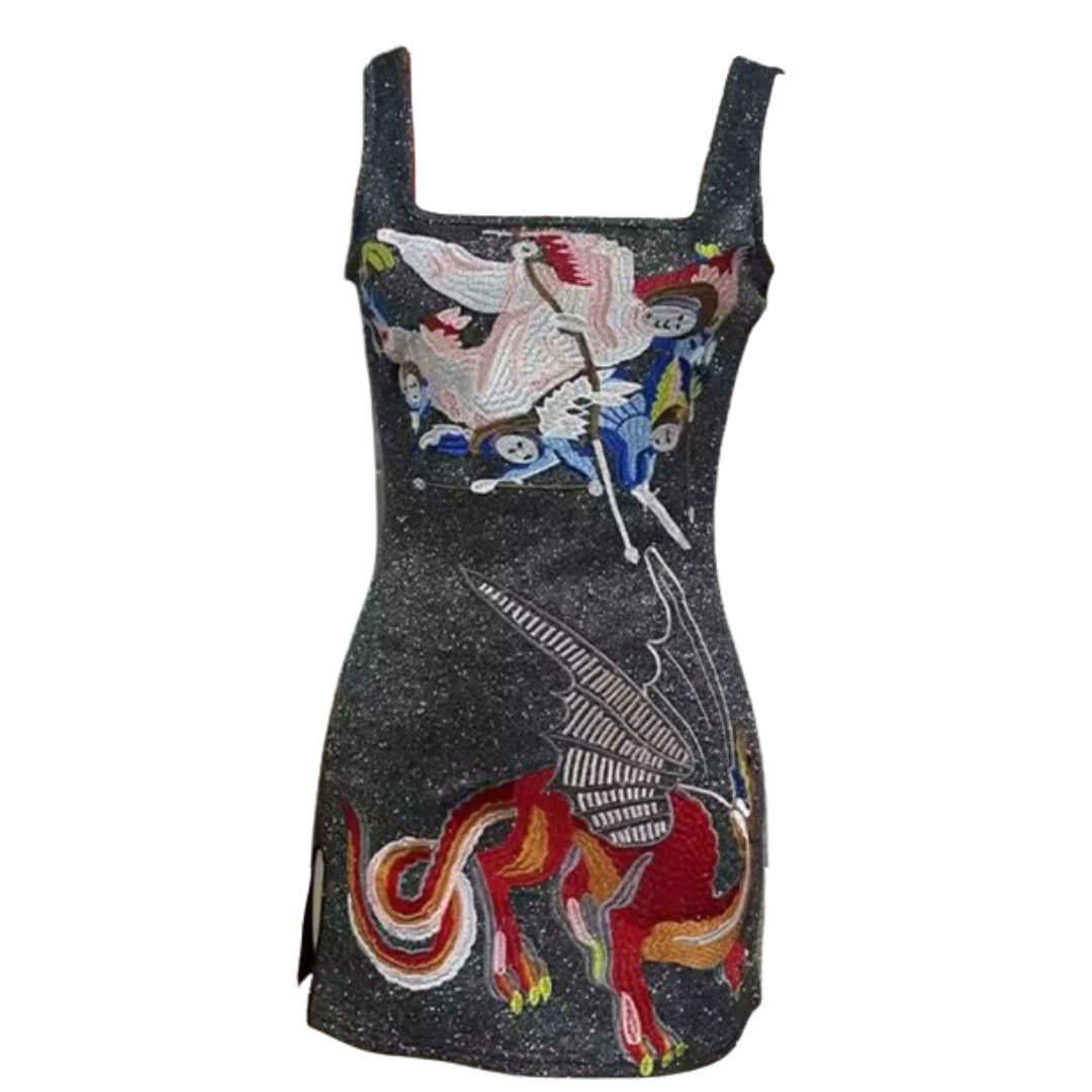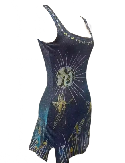 Expertly crafted in a shimmering stretch fabric, the Latavia Dress is designed with intricate embroidery for a touch of elegance. Perfect for any occasion, this mini dress offers a comfortable fit and adds a touch of glamour to your wardrobe.
