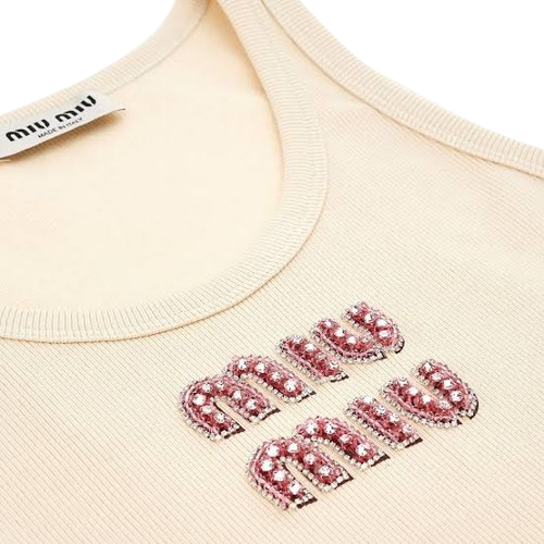 Crafted with a luxurious off-white ribbed fabric, the Naya Tank showcases a unique embellished insignia. This tank effortlessly blends comfort and style, perfect for any occasion. Elevate your wardrobe with this versatile piece.
